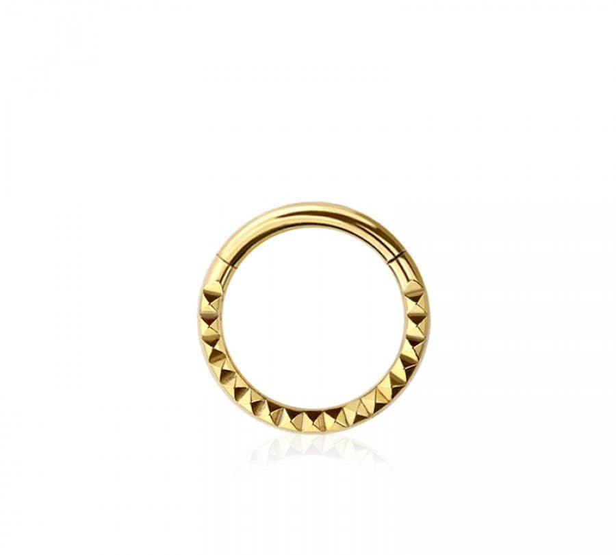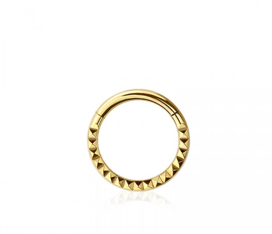 316L SURGICAL STEEL HINGED SEGMENT TRIANGLE DENTED CLICKER - Gold-16GA (1.2mm)-5/16" (8mm)