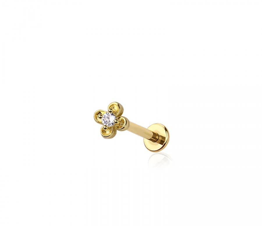 Style: Multi CZ clover flower top threadless (push-in) labret set