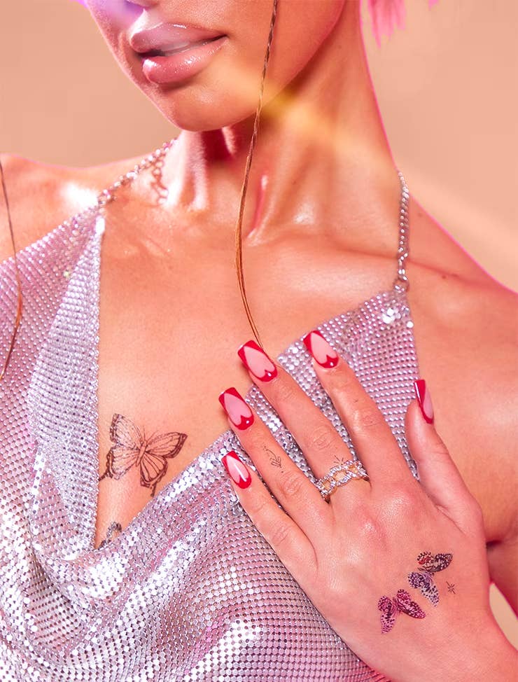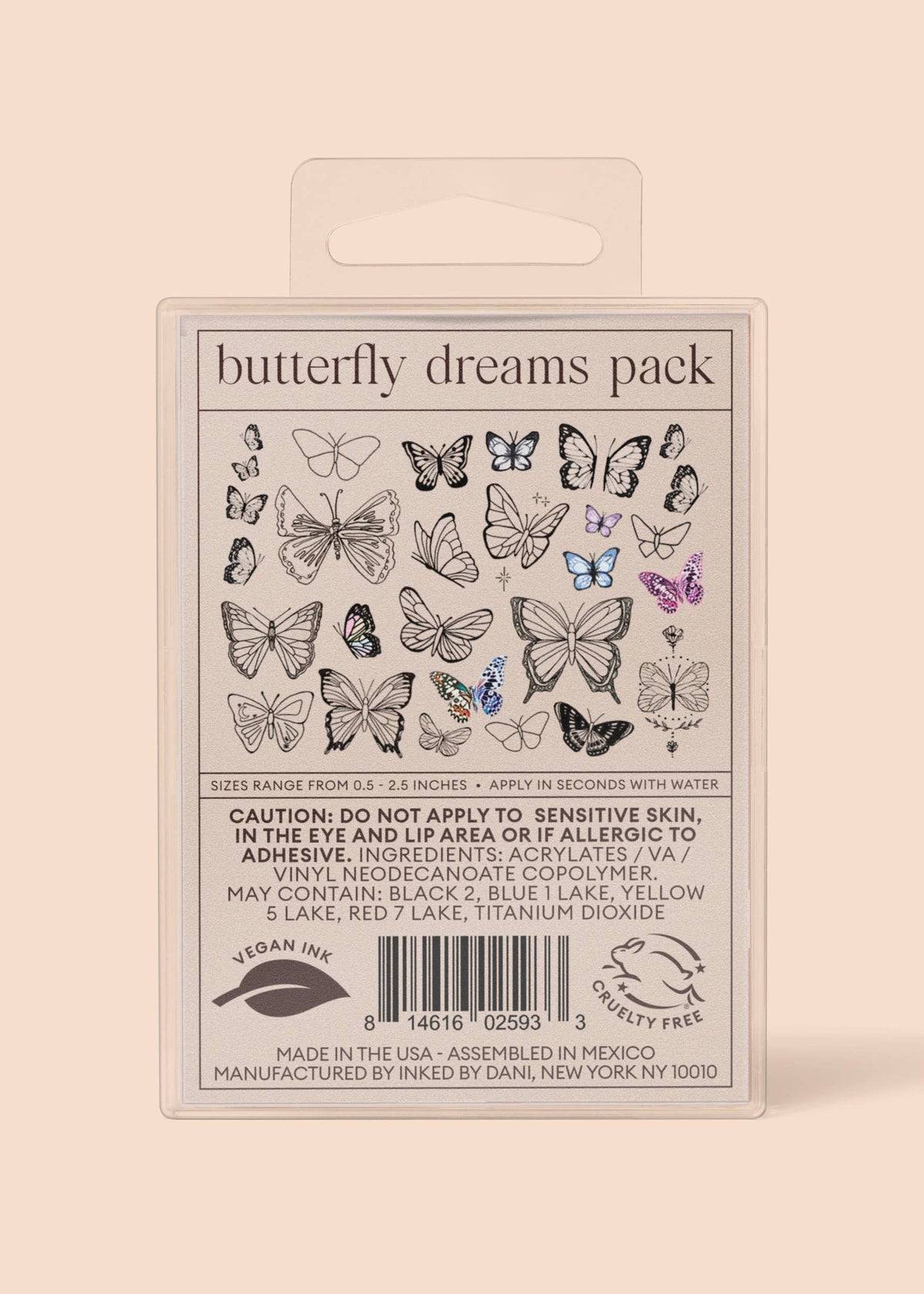 A classic for a reason. A set filled with butterflies for our dreamers. As seen on: Bella Hadid and Nicola Peltz Beckham. -EASY TO APPLY WITH JUST WATER -HAND-DRAWN DESIGNS -VEGAN INK -CRUELTY-FREE INK -NON-TOXIC INK -WATERPROOF INK -SIZES RANGE FROM ½ INCH TO 2 INCHES -MADE IN THE U.S.A. -LASTS A FEW DAYS UP TO 2 WEEKS