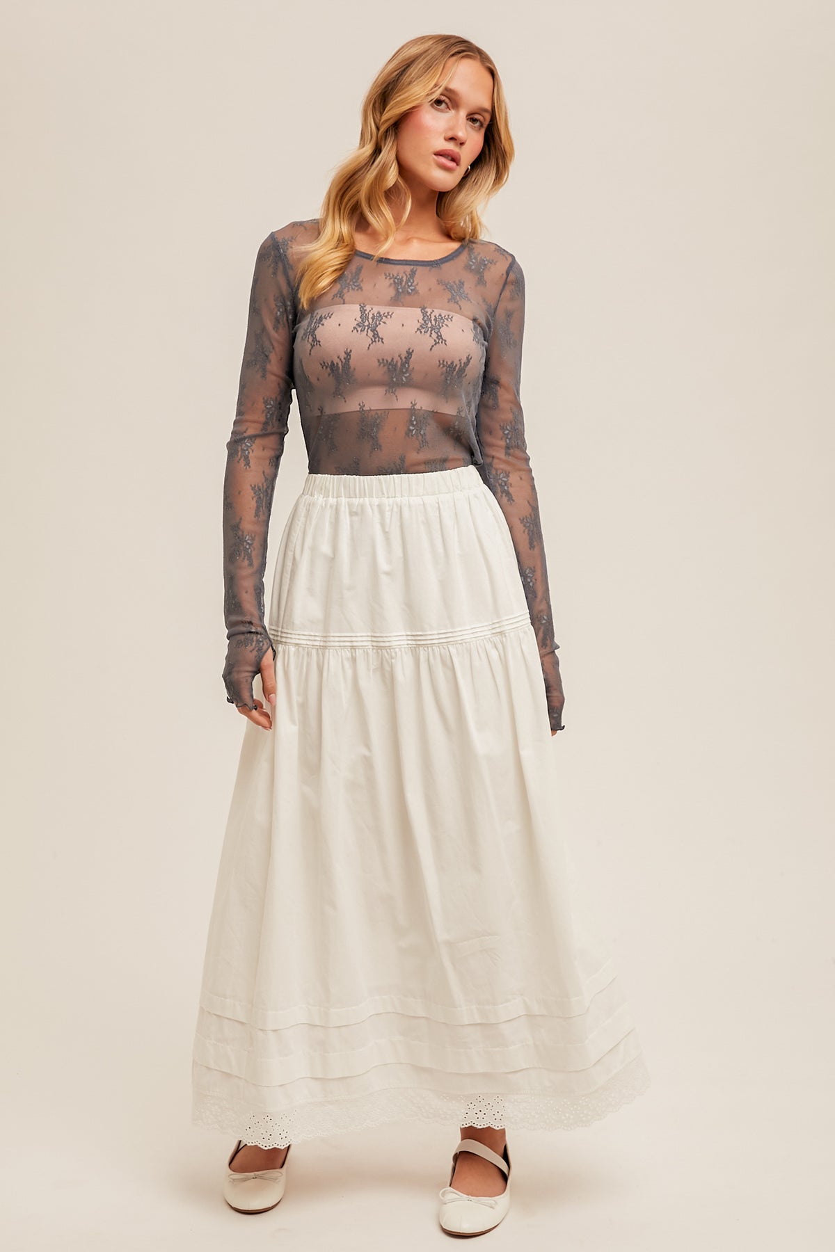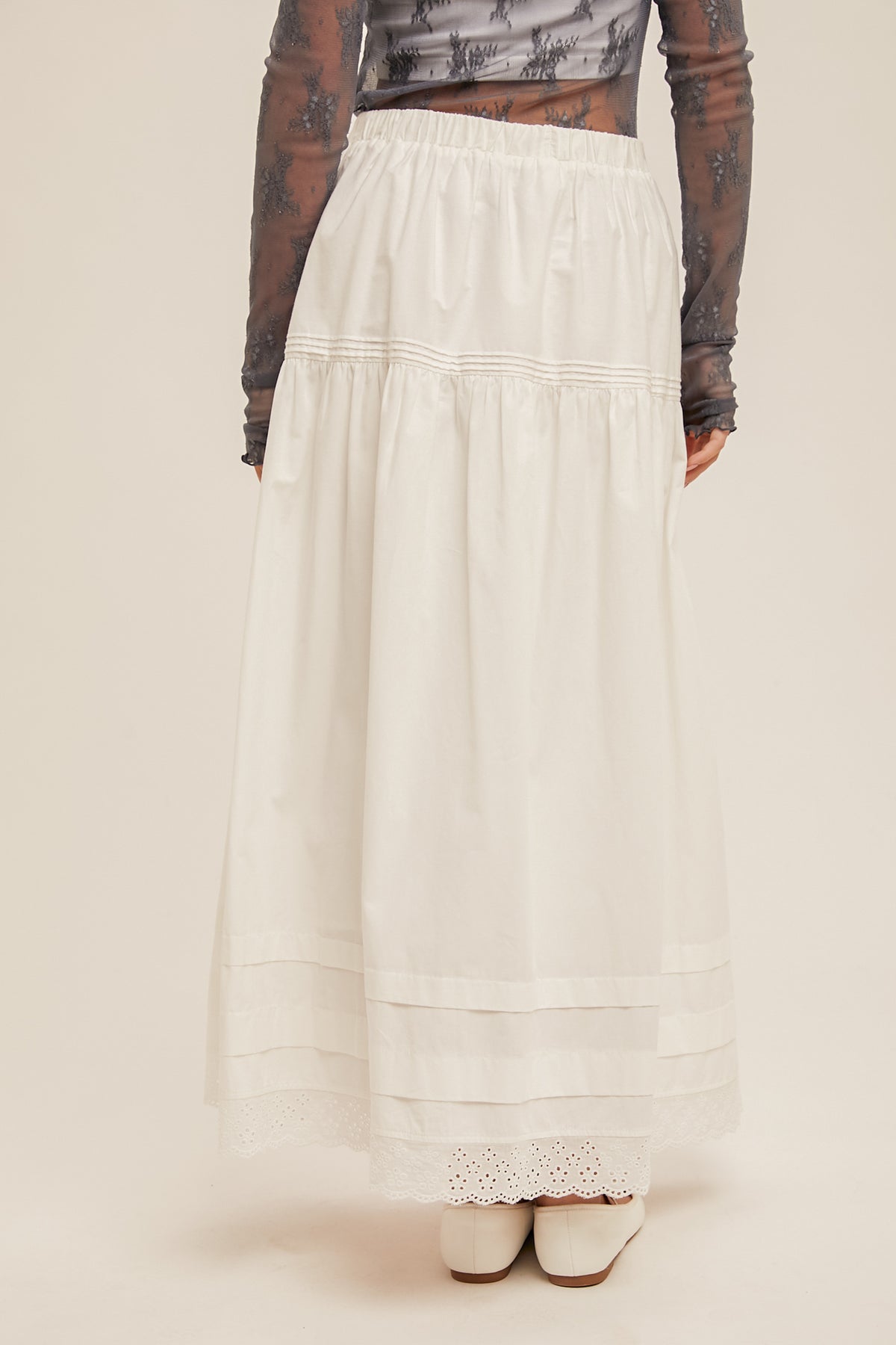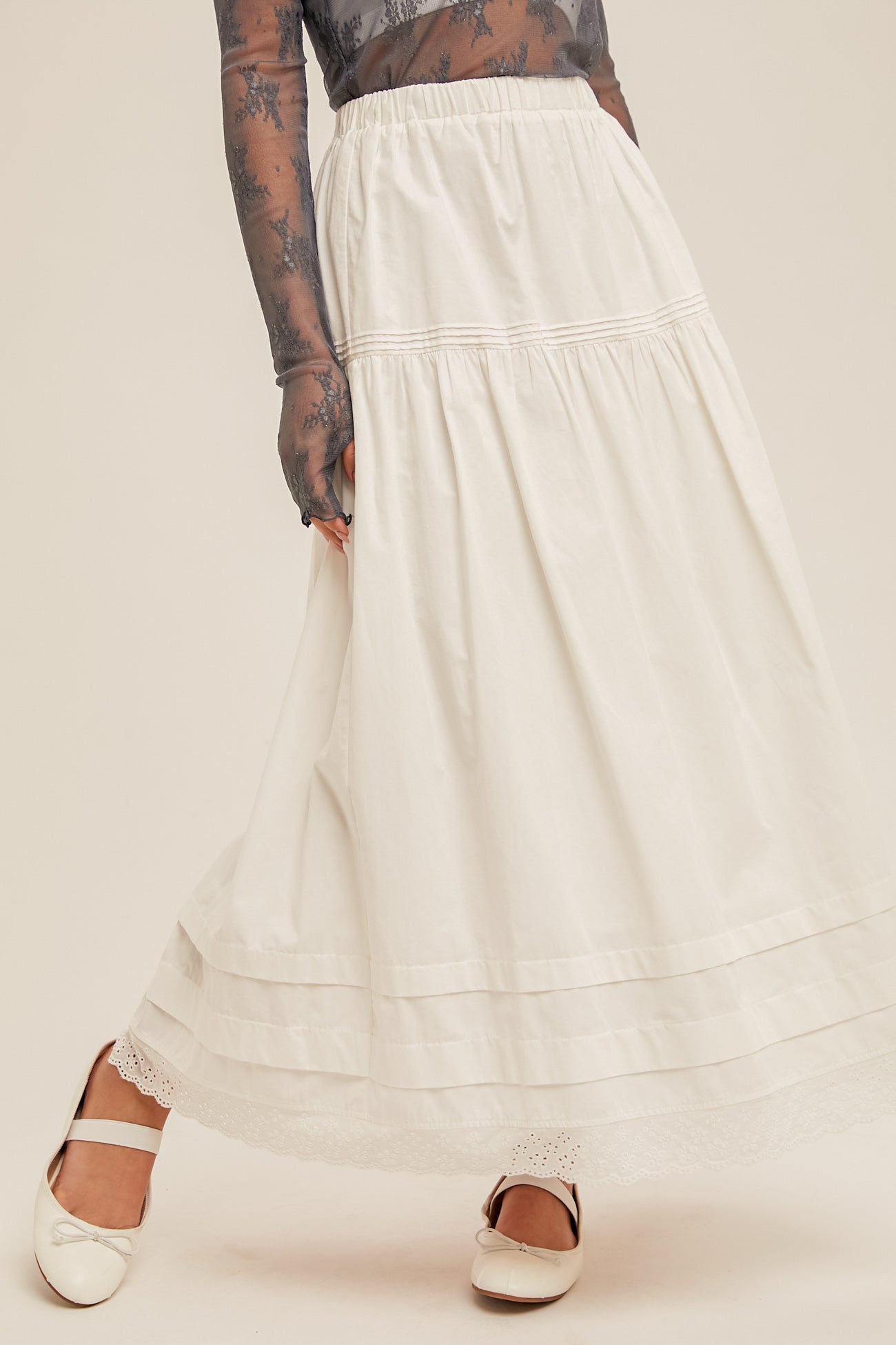 Inform when this item available Pintuck Detailed Embroidery Edge Cotton Skirt