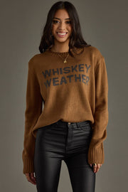 Brown & gray knit sweater "Whiskey Weather" text on the front 100% Acrylic