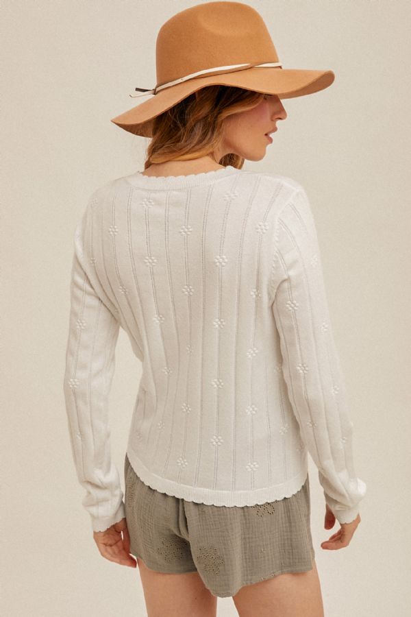 FLORAL DETAIL SCALLOP EDGE BUTTON DOWN CARDIGAN-50% ACRYLIC 40% COTTON 10% POLYESTER